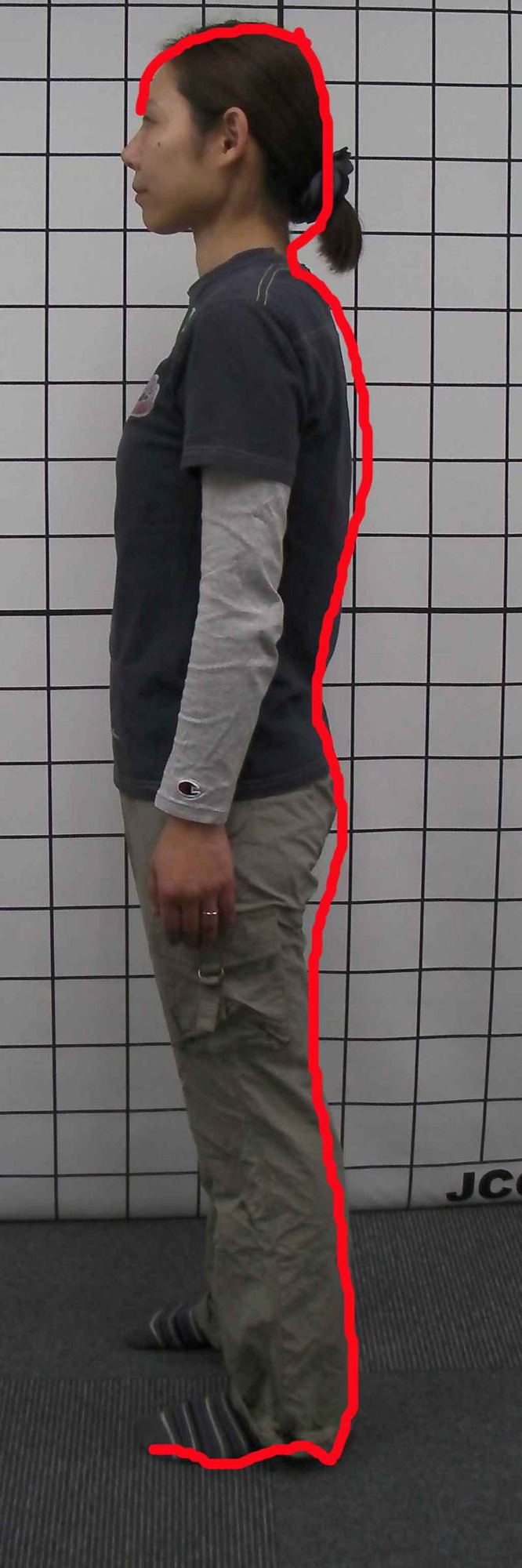 イメージ的には足の裏から背中を通って、上の端は眉毛のすぐ上になりますがそこまで繋がっています。(浅後線という名称の筋₋筋膜経線)