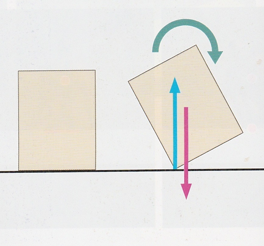 力学的に物体は重力下にある限りは重力が作用しますので、物体を支える「支点」と物体の「重心」位置のズレがあると回転モーメントが生じます。
