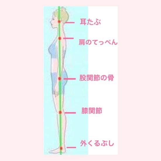 この5つのランドマークが垂直線上に並ぶと良い姿勢と言われています。