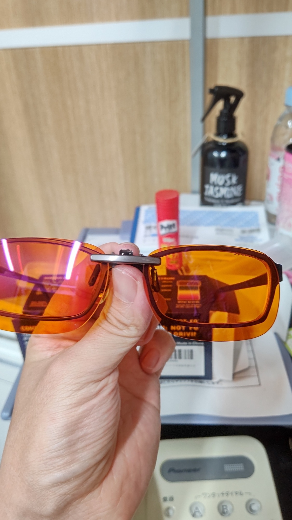 まぁ、既に世間では「JIN〇」などブルーライトをカットするメガネが販売されていますが、これは今使っている眼鏡に装着できるのがポイントと言う事と