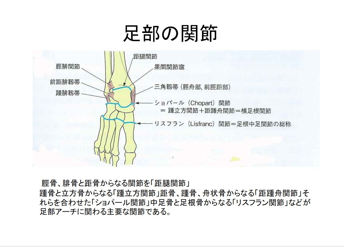 足首を曲げる時には主に足の4つの関節が動くのですが「距腿関節」「距骨下関節」「ショパール関節」「リスフラン関節」