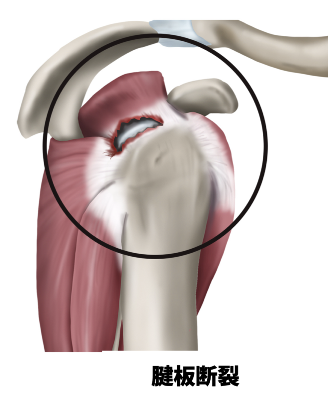 「腱板断裂」は棘上筋という腱板が断裂して激痛を生じる状態です。