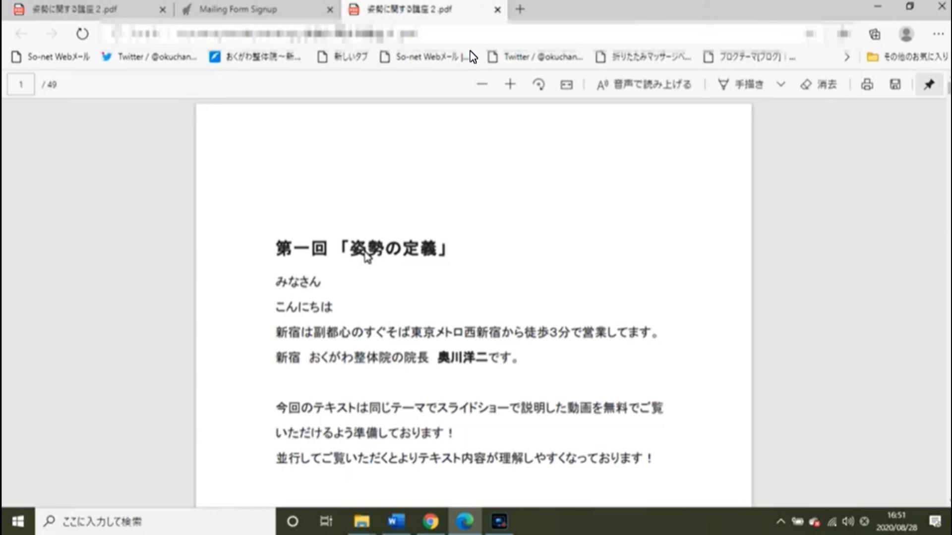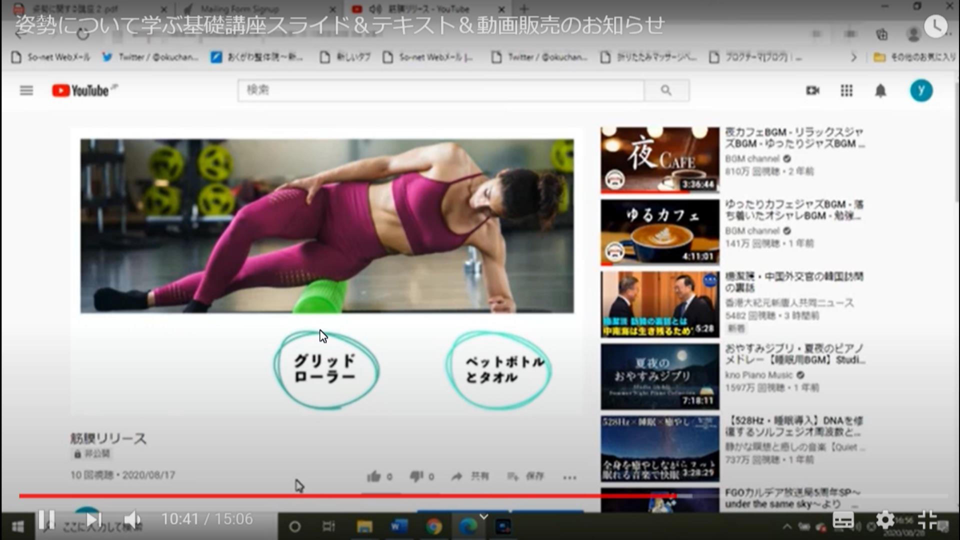テキスト内には内容を説明する「スライドショー動画」や「良い姿勢の作り方」「筋膜の緩め方」の説明動画など
