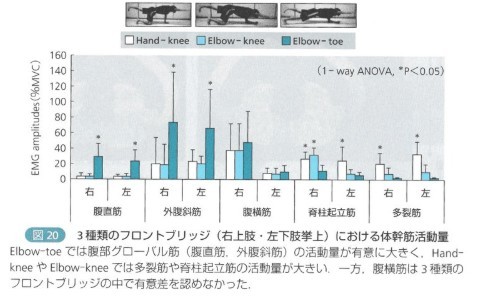 逆に「四つ這いでの体幹トレーニング(hand knee)」がインナーユニットを最も活性化する。