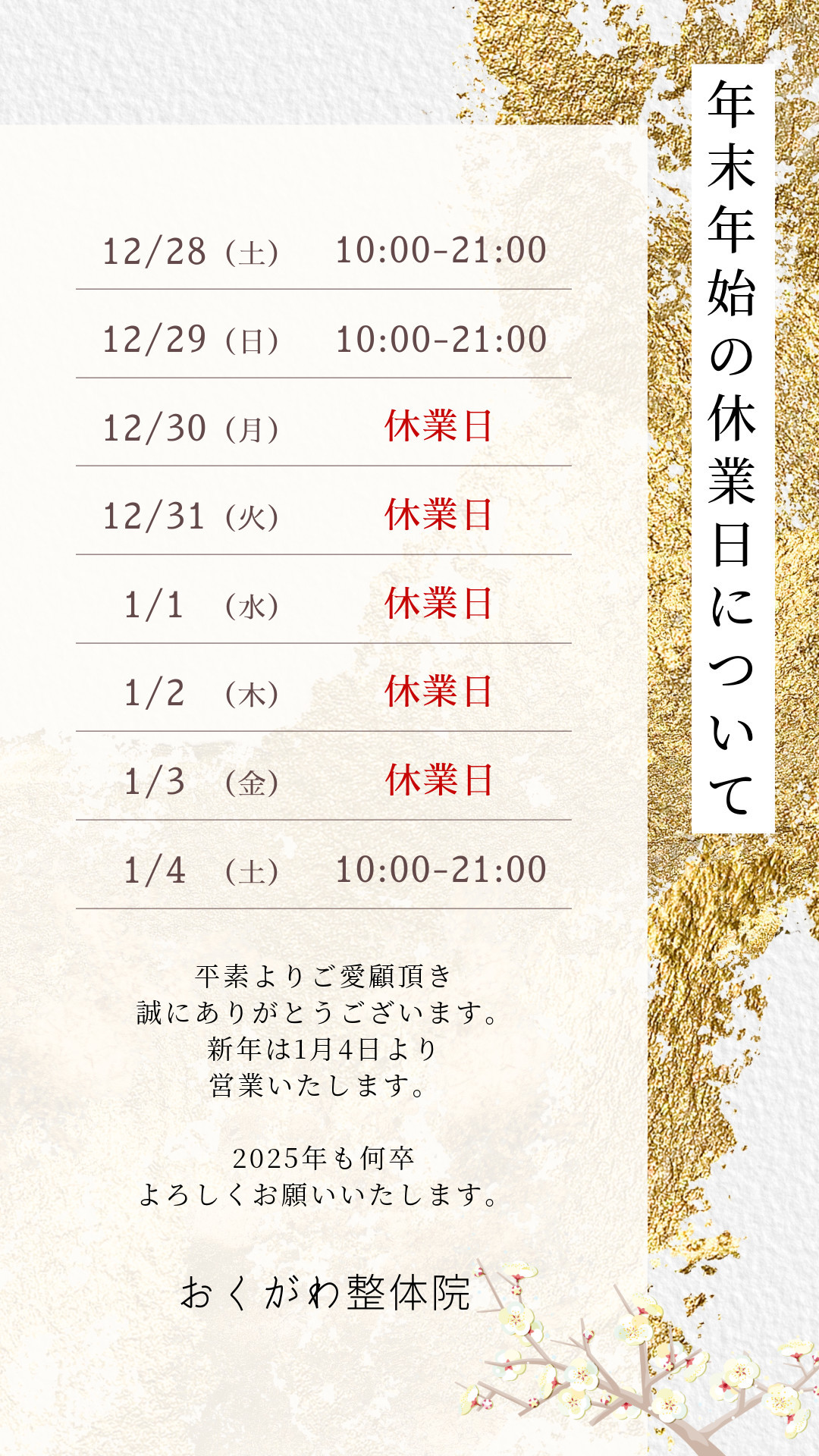 引き続きおくがわ整体院をよろしくお願いいたします。