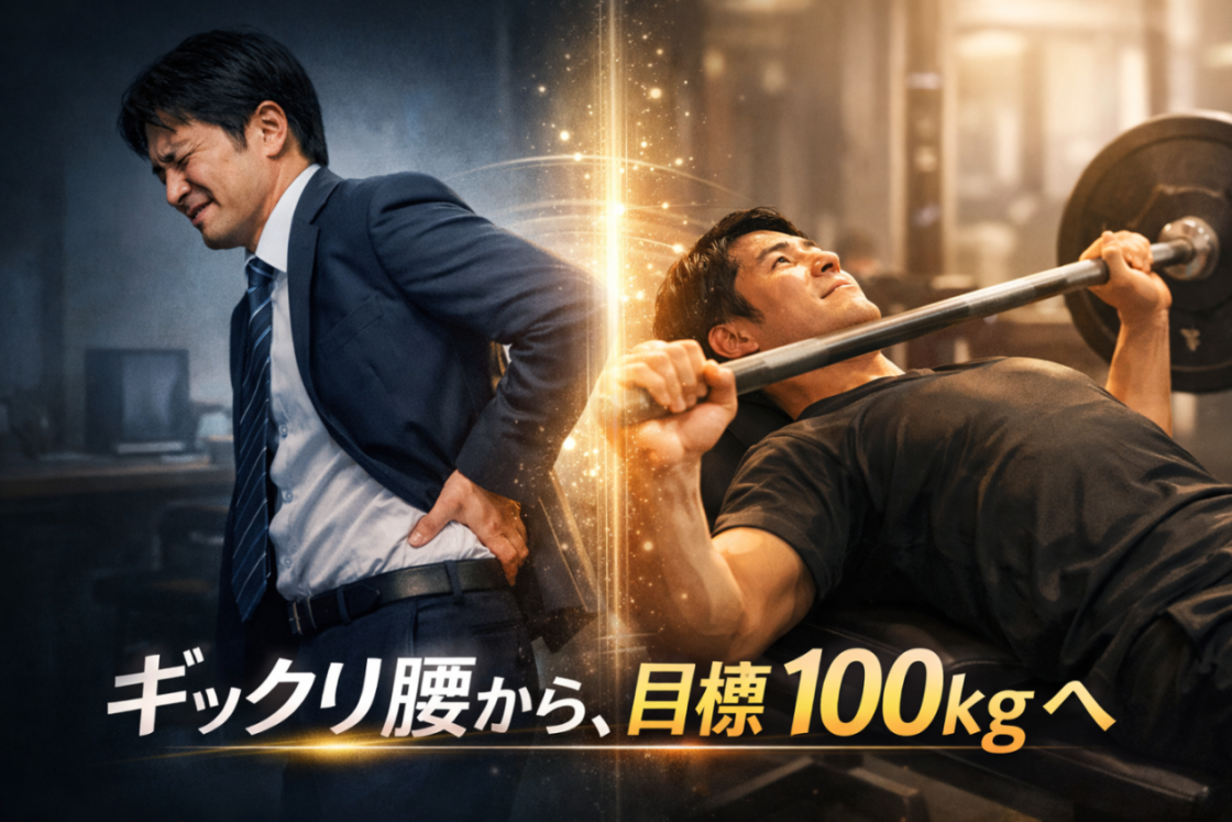 blog記事更新 ギックリ腰のリハビリでご来院、今では目標ベンチプレス100kgのNさま(インタビュー動画&テキスト)